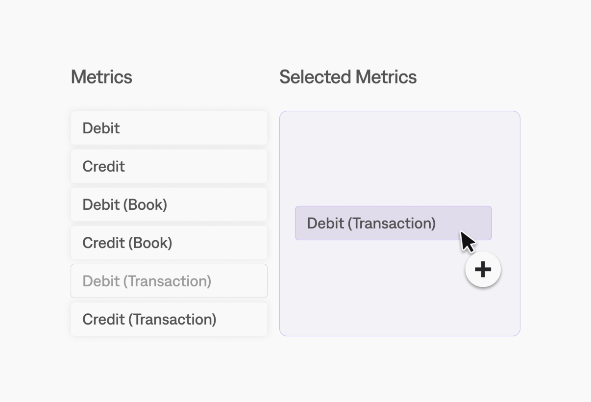 Drag and drop to create custom reports, then drill down from any metric to the source data.