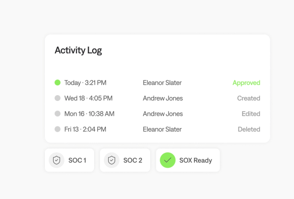 SOC 1 and SOC 2 certified, with the controls and audit trails needed for SOX compliance.
