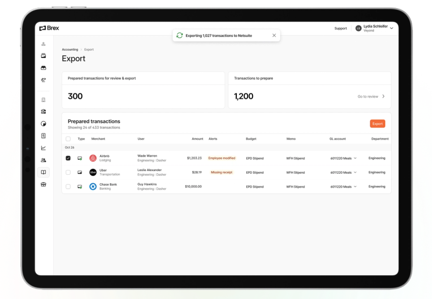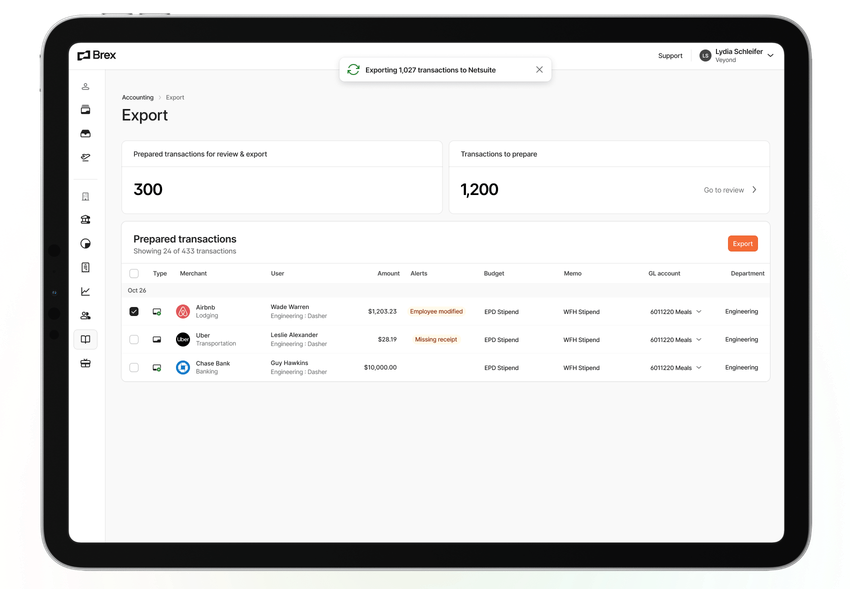 Invoices, card transactions, and reimbursements are coded in Brex using AI and are auto-synced to Campfire.